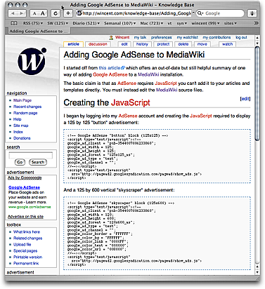 I've also added some Google AdSense advertising to the Knowledge Base wiki. I don't plan to ever put advertising on the commercial parts of this site (the product pages, for example) but I have no problems with adding a small amount of non-intrusive ads to a section like the Knowledge Base which is a free resource. I'm motivated principally by curiosity; I want to see how AdSense works from the side of the website operator. I suspect that on a site like this one that receives only modest traffic that the income will be insignificant, possibly even nil, but I'd still like to give it a try and see what happens.